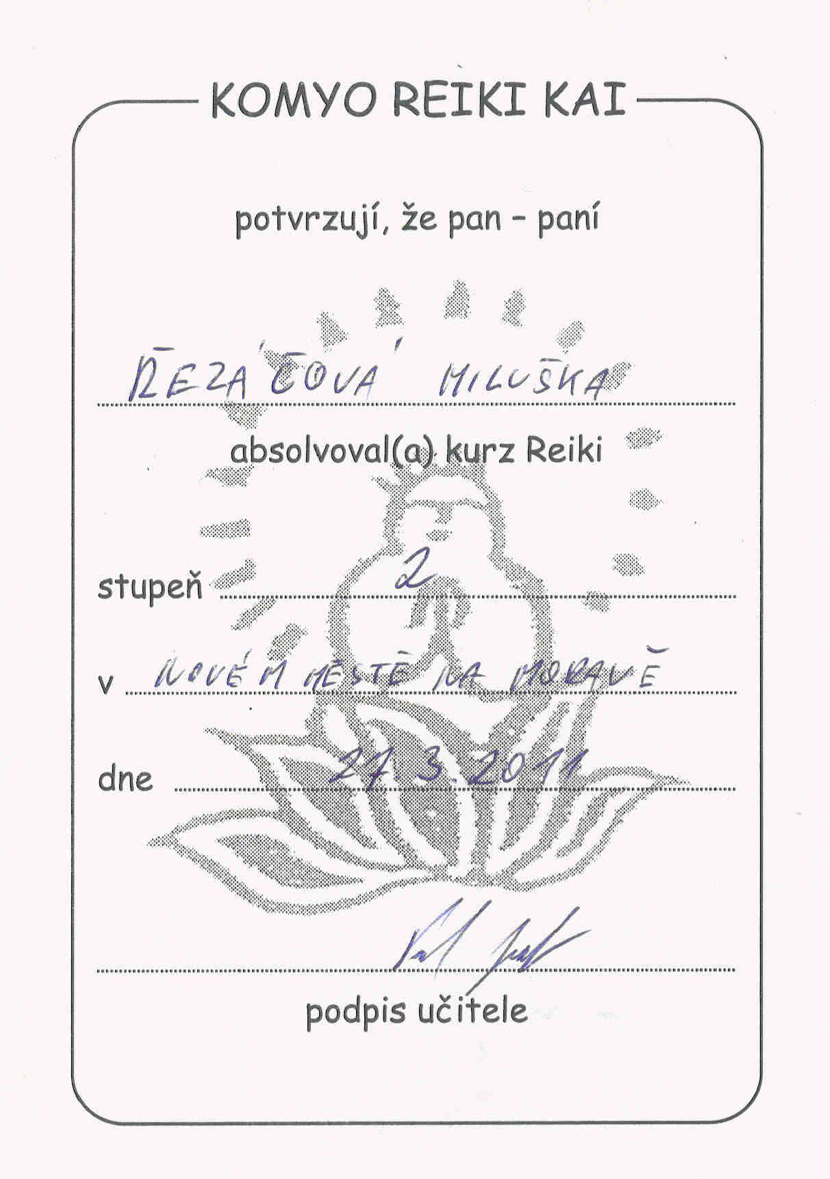 Certifikát komyo reiki kai
